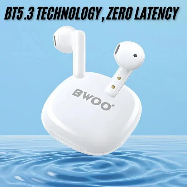 BWOO BW-06 Mini Wireless Bluetooth Earphone | TWS Gaming Earbuds with BT 5.3 White