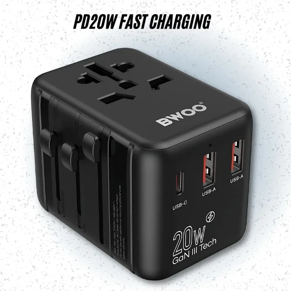 BWOO New Arrivals UK EU AU US Plug Multifunction Chargers PD 20W Black