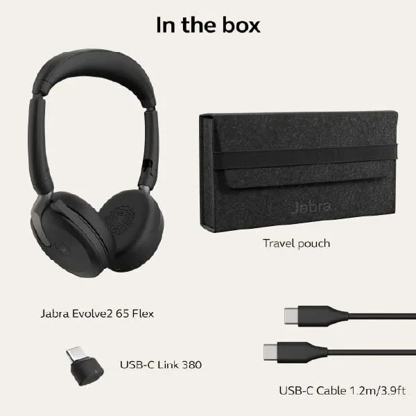 The Jabra Evolve2 65 Flex is a premium wireless stereo headset designed for professional use, featuring hybrid Active Noise Cancellation (ANC) and ClearVoice microphones for crystal-clear calls. Its lightweight, foldable design and Jabra Air Comfort technology ensure all-day comfort and portability. With up to 21 hours of talk time and fast charging capabilities, it’s ideal for long workdays. The headset is certified for Microsoft Teams and other major UC platforms, making it perfect for seamless collaboration.