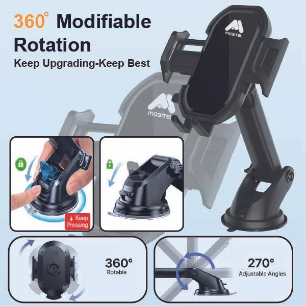 Mobitel Adjustable Car Phone Mount for Dashboard & Windshield - 360° Rotating Holder for iPhone, Samsung & other Smart Phones