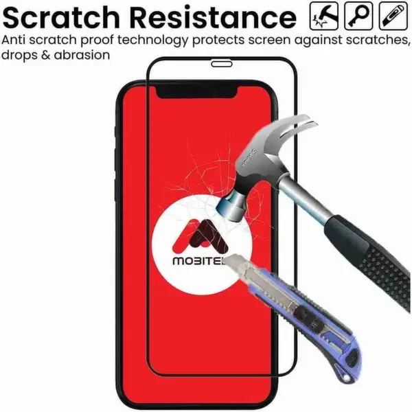 Mobitel's full-coverage tempered glass screen protector takes the worry out of drops and bumps. Engineered for shock absorption, it disperses impact force to prevent your phone's screen from shattering. Enjoy the peace of mind that comes with superior protection, all while maintaining a sleek, edge-to-edge design.