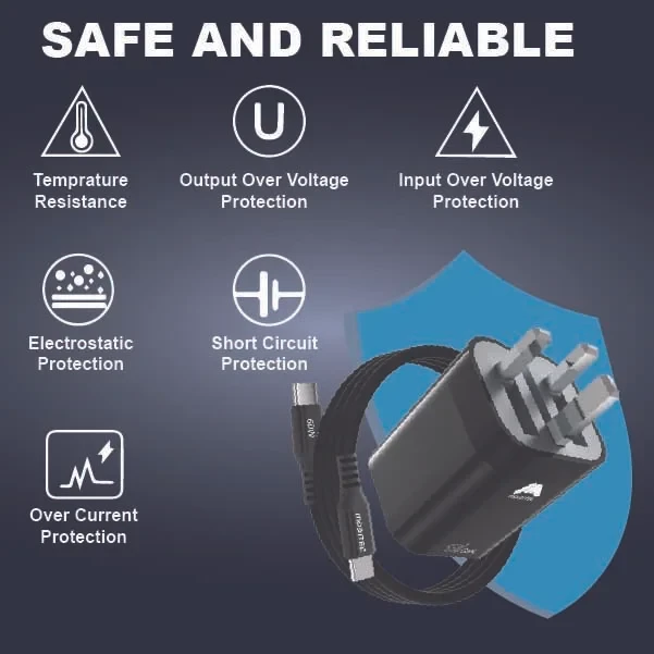 Charge your devices with confidence using the Mobitel 65W GaN Charger. Not only does it offer rapid charging speeds thanks to the GaN technology. Overvoltage protection, overcurrent protection, overheating protection, & short circuit protection ensure your devices are safe from harm while charging.
