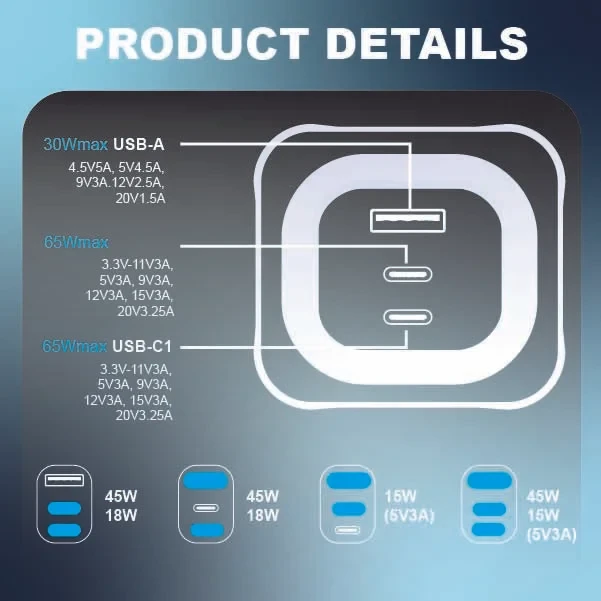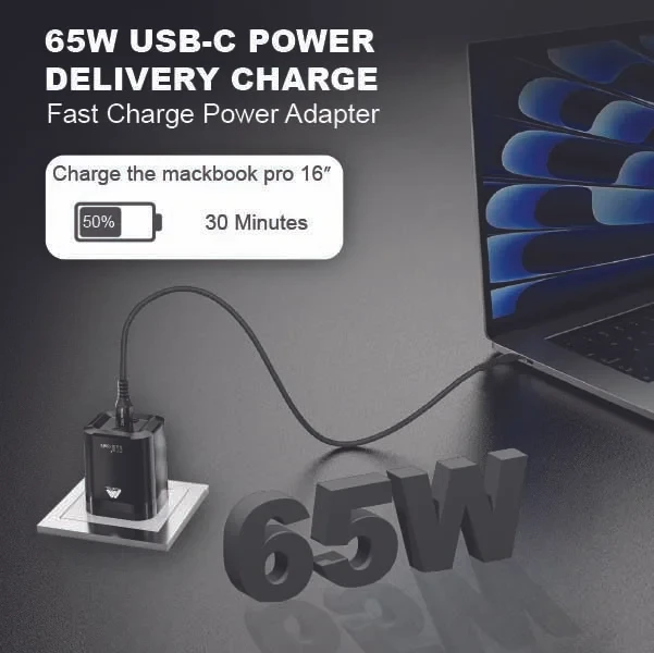 Features | Foldable, 3-Ports, 65W Fast Charging, Portable, Easy to Carry, Free 60W USB-C Cable |