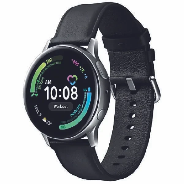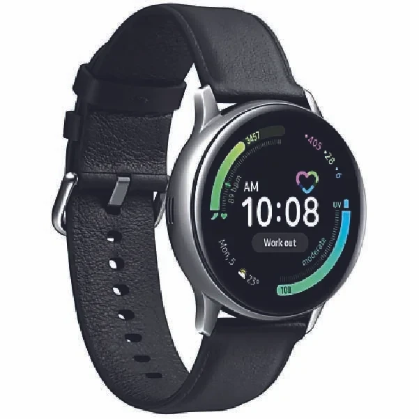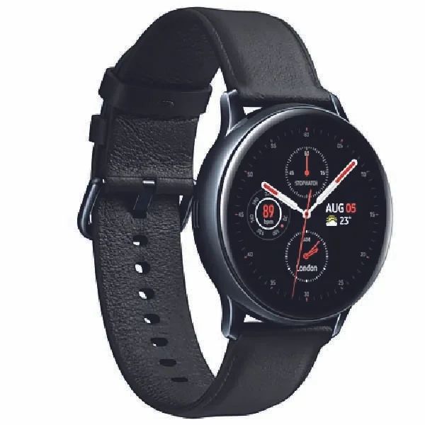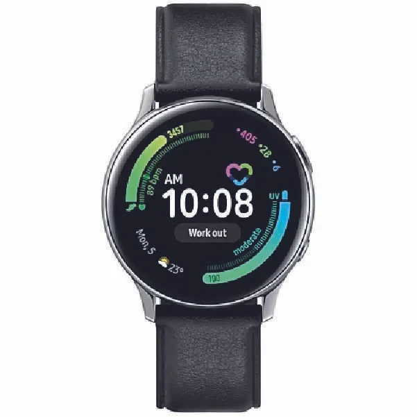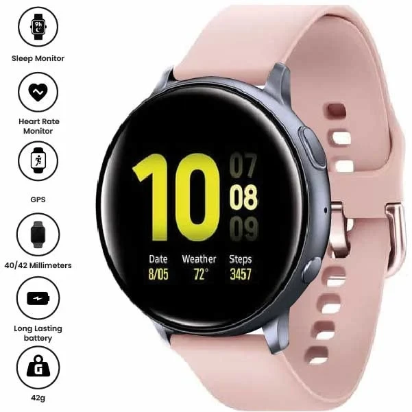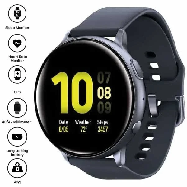 The Samsung Galaxy Watch Active2 (44mm, Bluetooth) in Aqua Black is a sleek, lightweight smartwatch designed for fitness and wellness tracking. It features a vibrant 1.4-inch Super AMOLED display, advanced sleep monitoring, heart rate tracking, and built-in GPS. With up to 2 days of battery life and wireless charging, it's perfect for staying connected and healthy on the go.