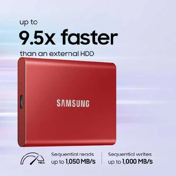 High-speed data transfer with read speeds up to 1,050 MB/s and write speeds up to 1,000 MB/s, using USB 3.2 Gen 2 and PCIe NVMe technology.