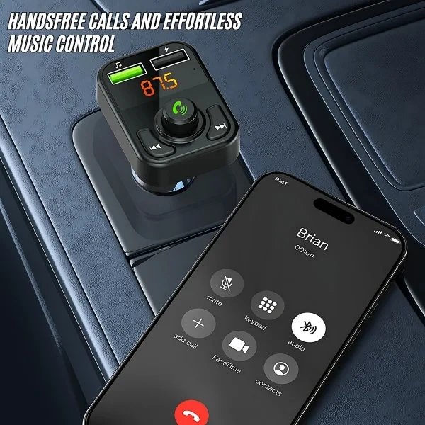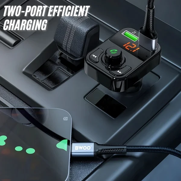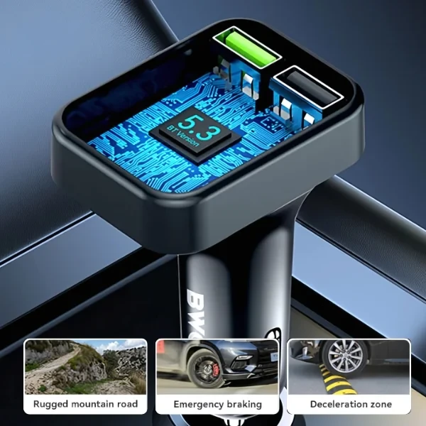 USB-A Car Charger dual ports FM Transmitter 3.1A output BT V5.3 Black
